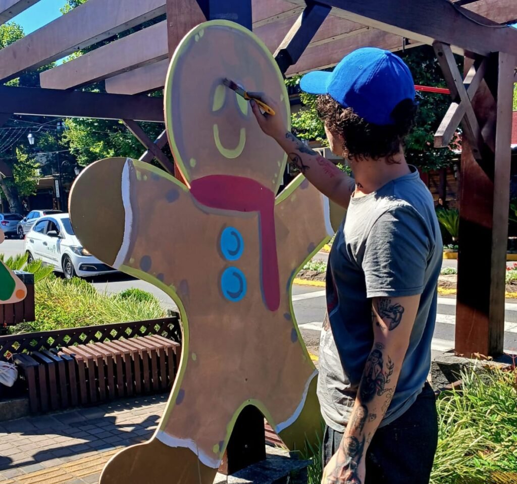 Um movimento que partiu da comunidade de Canela tem deixado as ruas da cidade mais coloridas e bonitas. As figuras natalinas que enfeitam os pergolados de madeira da Avenida Osvaldo Aranha estão recebendo um novo layout. Quem lidera a iniciativa é o ilustrador canelense João Pedro Bohrer que, de forma voluntária, contribui com a parte lúdica da decoração do 38º Sonho de Natal de Canela.